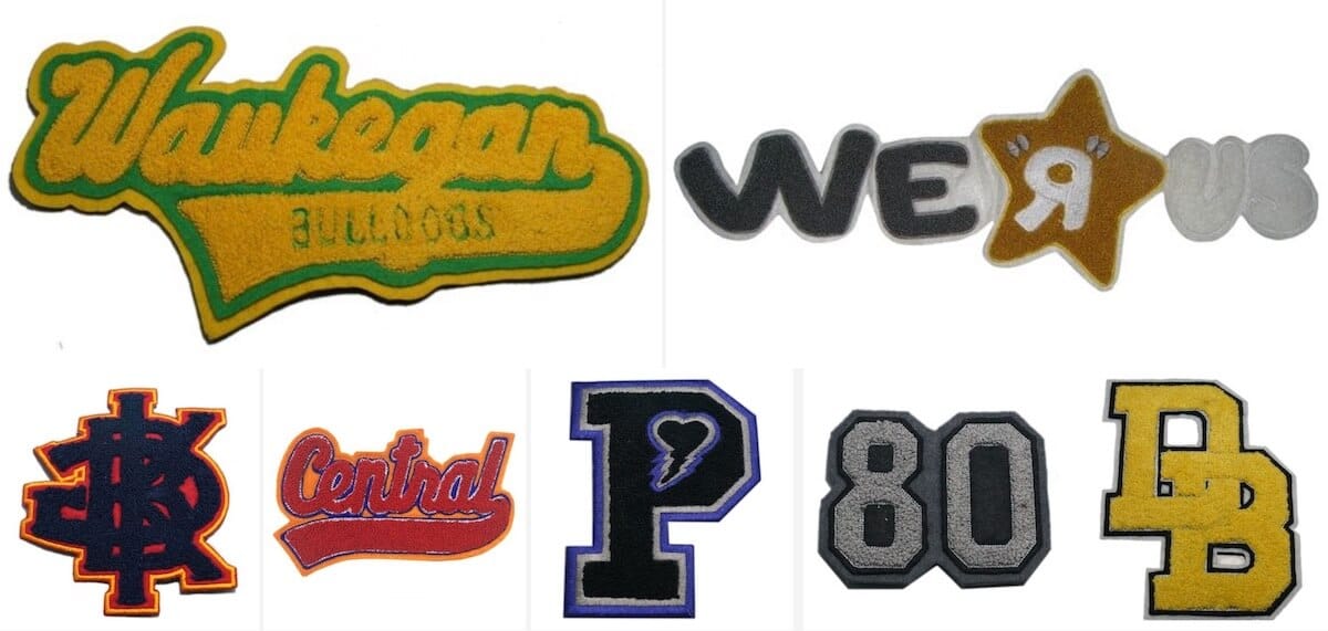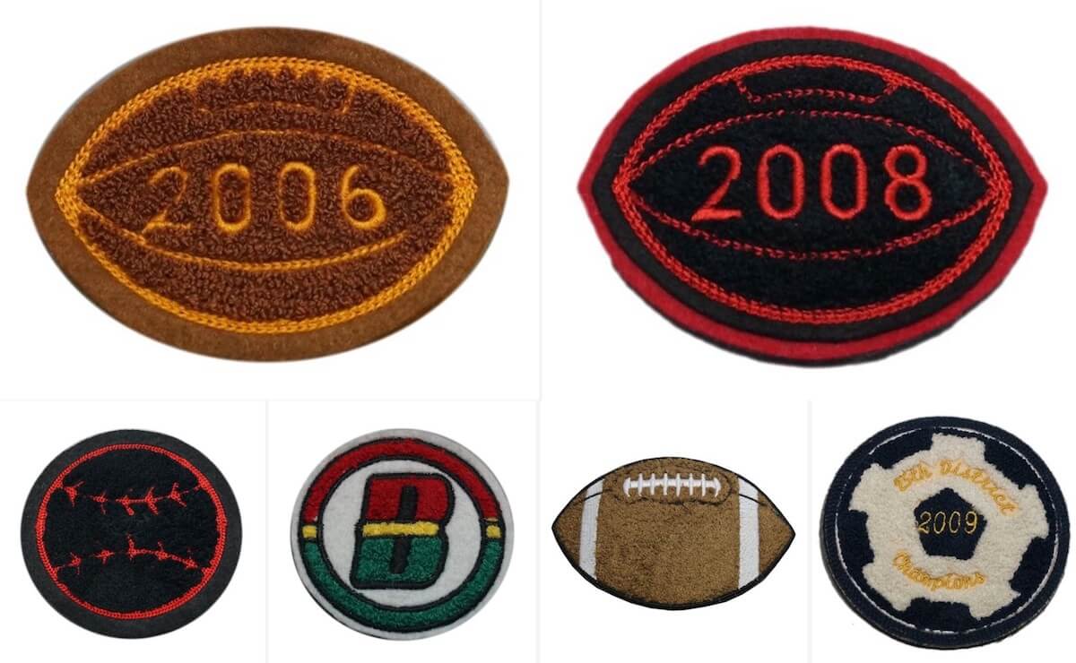 There are many types of Custom chenille patches.For example, State shape patches, Sport patches, Schoole activity patches, Varsity letters, Numbers and Positions, Grad year patches, Script words, Single number, star, bars & Chevrons, Mascot patches and so on.